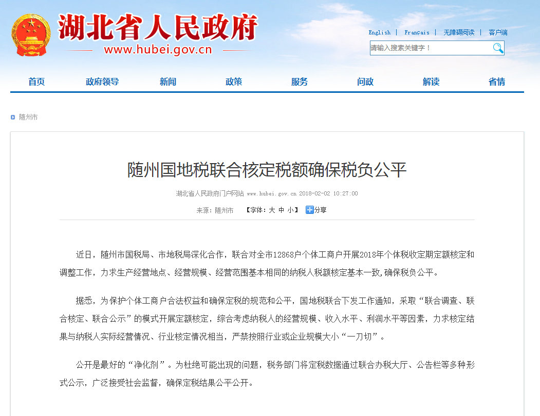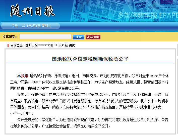 【湖北省政府】【随州日报】随州国地税联合核定税额确保税负公平