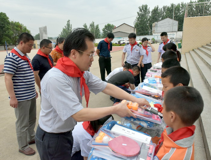 “‘税’护梦想,‘益’起行动!”5月30日一大早,随州市国税局精准扶贫联系点随县高城寺,小学的同学们如期迎来熟悉的“税务蓝”。随州市国税局局长赵先锋与青年干部为孩子们发书包、文具和书籍。以往来学校慰问时,赵先锋将孩子们的兴趣爱好一一记在心里,一双双小手很快领到他们心仪已久的礼品。