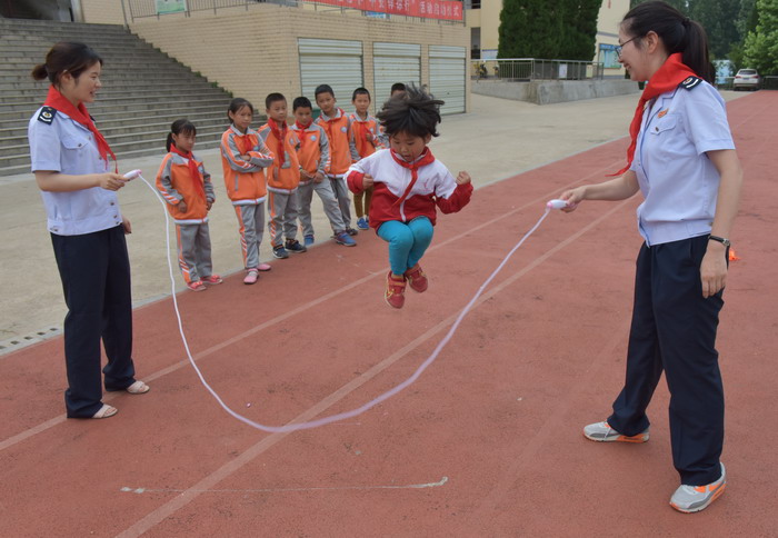 “看我跳的高不高!”送来的礼物很快就将孩子们的热情调动起来,穿着“税务蓝”的哥哥姐姐和同学们很快成了好朋友。在跳绳互动中,突然冲出来的税务哥哥耿现超自告奋勇表演跳绳,惹得小朋友们捧腹大笑。